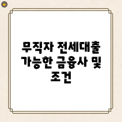 무직자 전세대출 가능한 금융사 및 조건